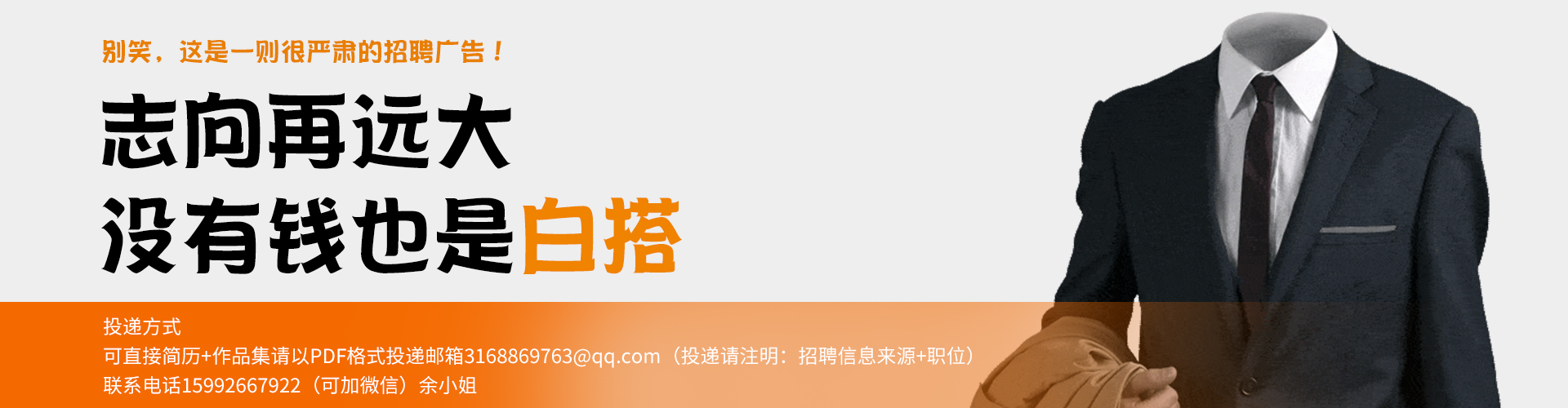 可直接簡歷+作品集請以PDF格式投遞郵箱3168869763@qq.com(投遞請注明:招聘信息來源+職位)
